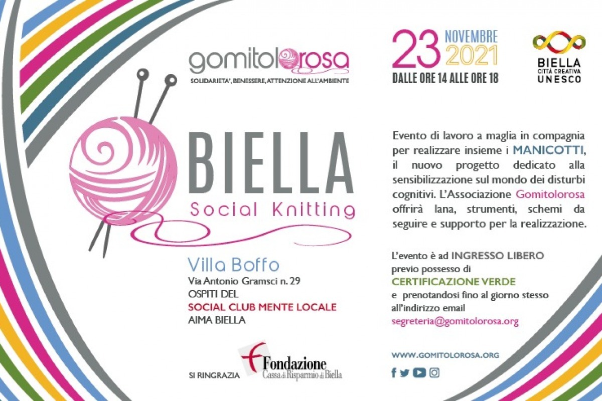 L’evento BIELLA SOCIAL KNITTING è sostenuto anche dalla Fondazione Cassa di Risparmio di Biella proprietaria di Villa Boffo, che ha messo a disposizione del bene comune questo straordinario immobile creando al suo interno, in collaborazione con AIMA Biella, un innovativo centro di prevenzione e cura della malattie neurodegenerative.