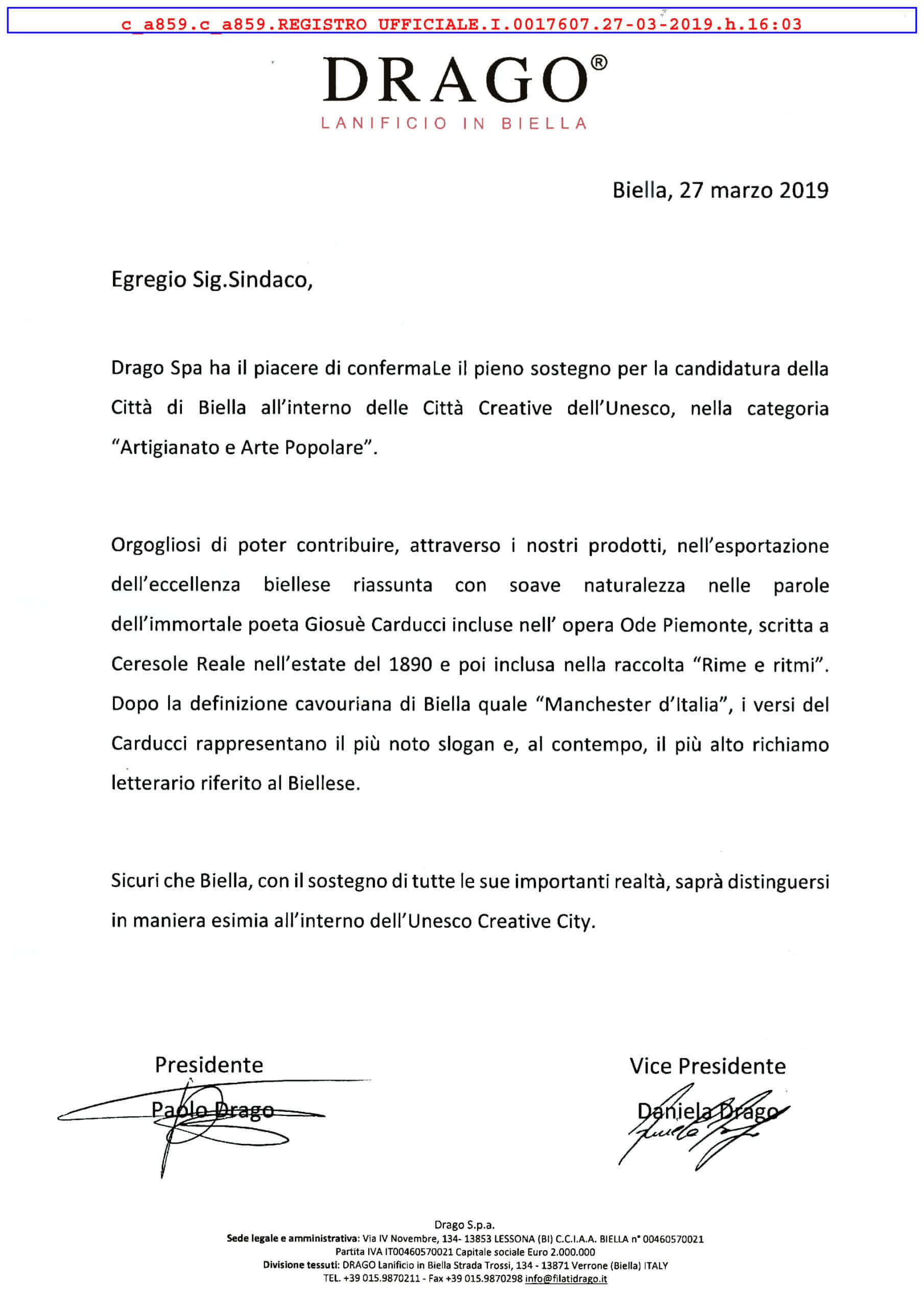 Tutte (158)Italia (134)Mondo (24)DRAGO LANIFICIO DI BIELLALORO PIANACHIORINO TECHNOLOGYBIELLA MANIFATTURE TESSILI SRL – A COMPANY OF MARZOTTO WOOL MANUFACTURING SRLCAPPELLIFICIO BIELLESE 1935BARBERA S. E FIGLIALYKI – FELICE DE PALMA & C.CENTOVIGNE SOCIETÀ AGRICOLAPMI S.r.l. Precedente 1 … 3 4 5 … 18 Successiva